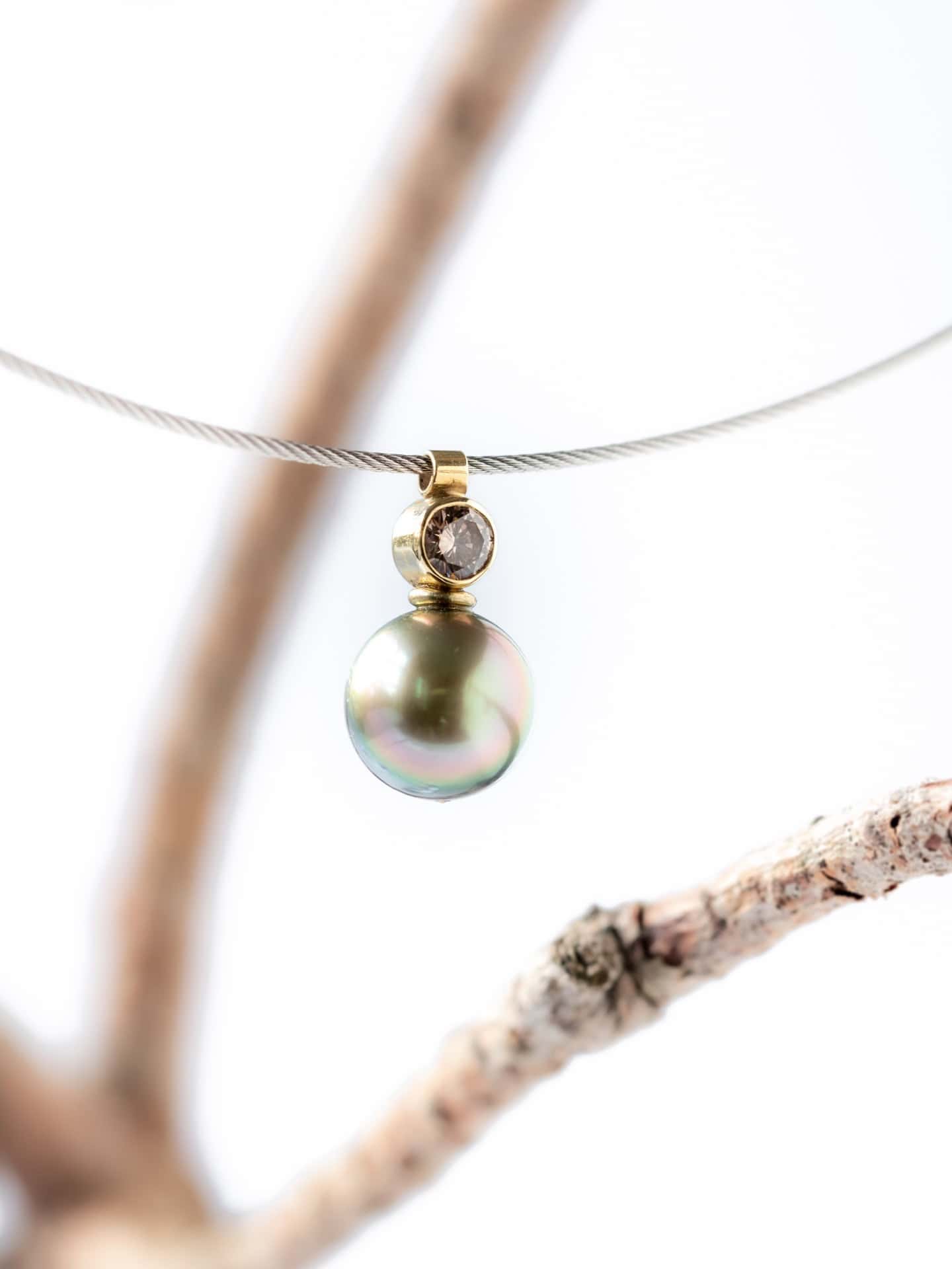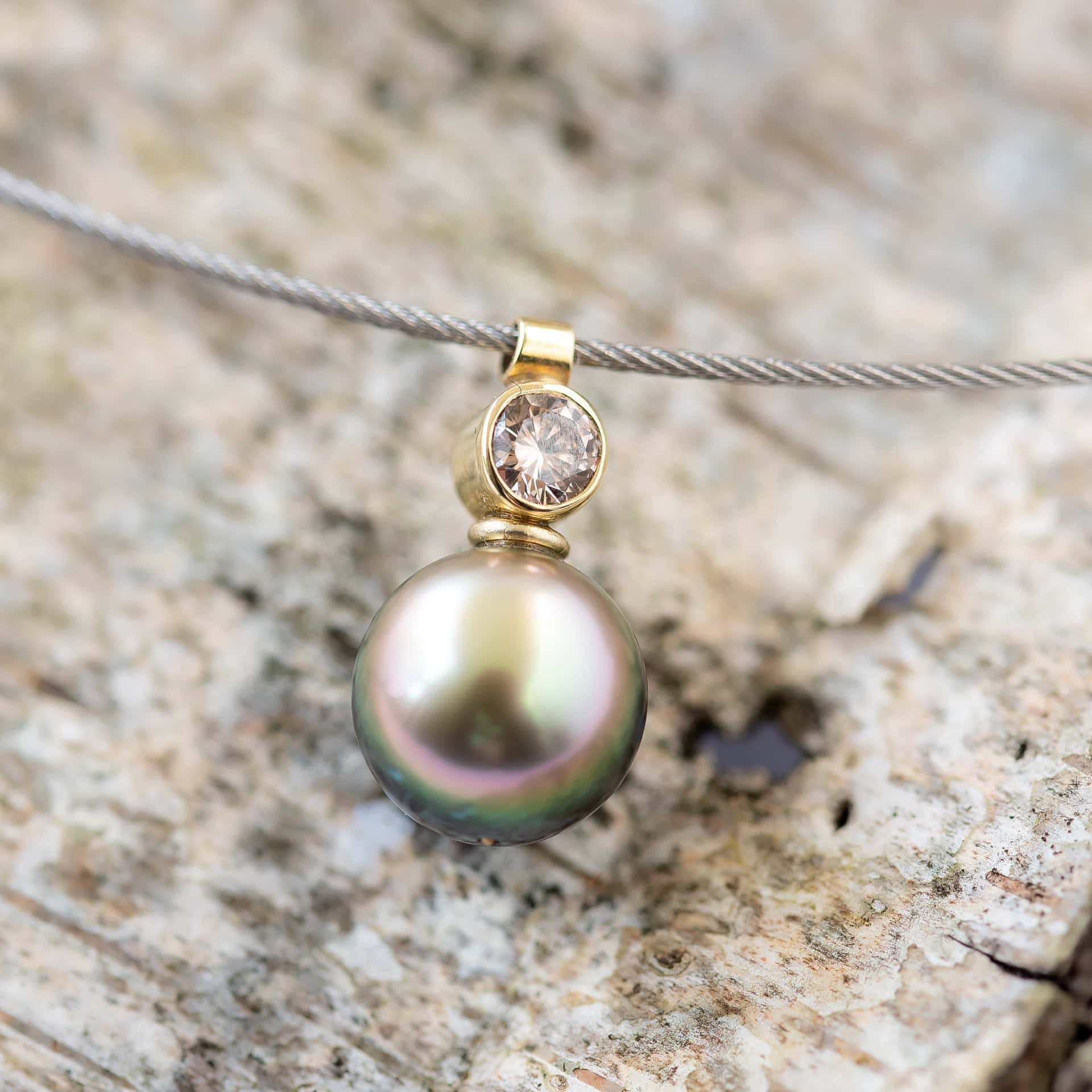 Gouden hanger met Tahiti parel en briljant geslepen diamant.