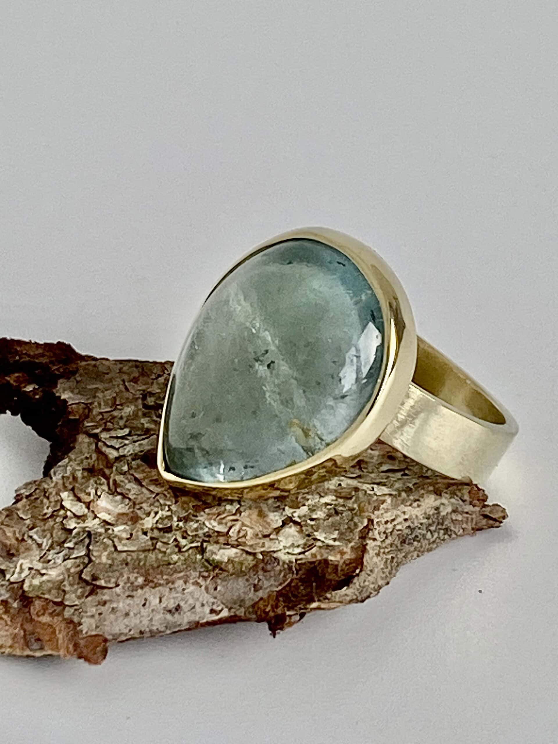 Gouden ring met topaas cabochon, sky blue.